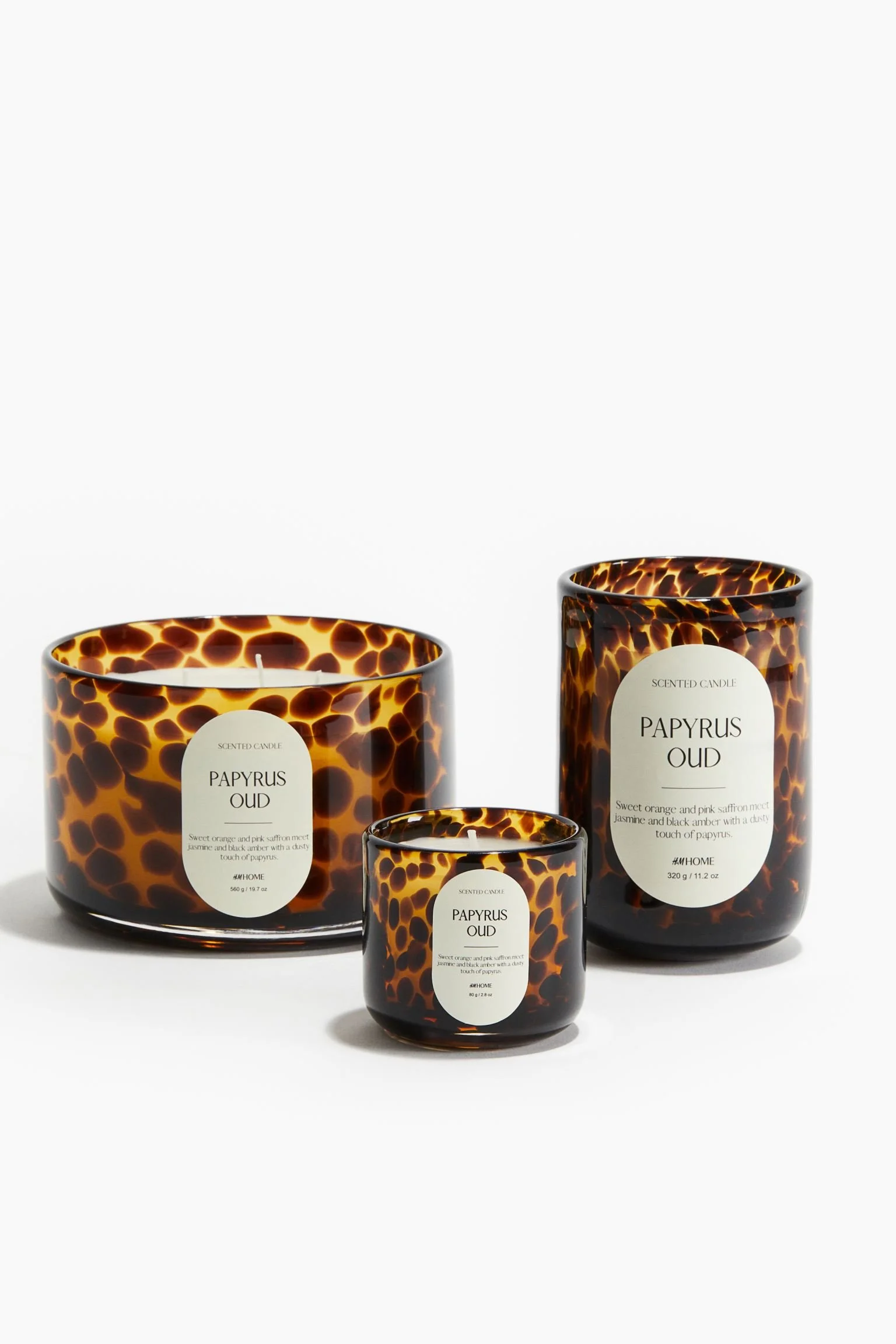 Scented Candle X H&M HOMERole: Designer Year: 2022 Mouthblown glass scented candle. We explored different glass techniques: from marbling, to confetti and stripes, to achieve colorful combinations and pair the,m with quality room fragrances.